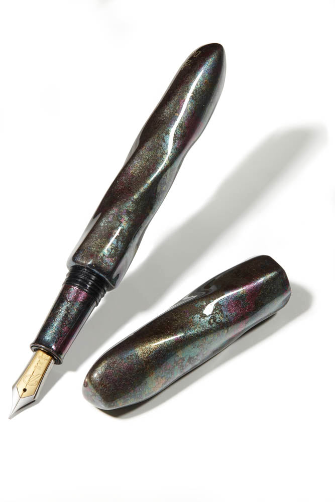 Palisades introduces the Yuzen Standard version, which shares practically all of the features of the original Dry Urushi Yuzen: its size, shape, Urushi coating, and trim, except that it is created by machine and resin materials. Both models are fitted with the same 18K two-tone nibs made by most famous fountain pen manufacturers in Japan.